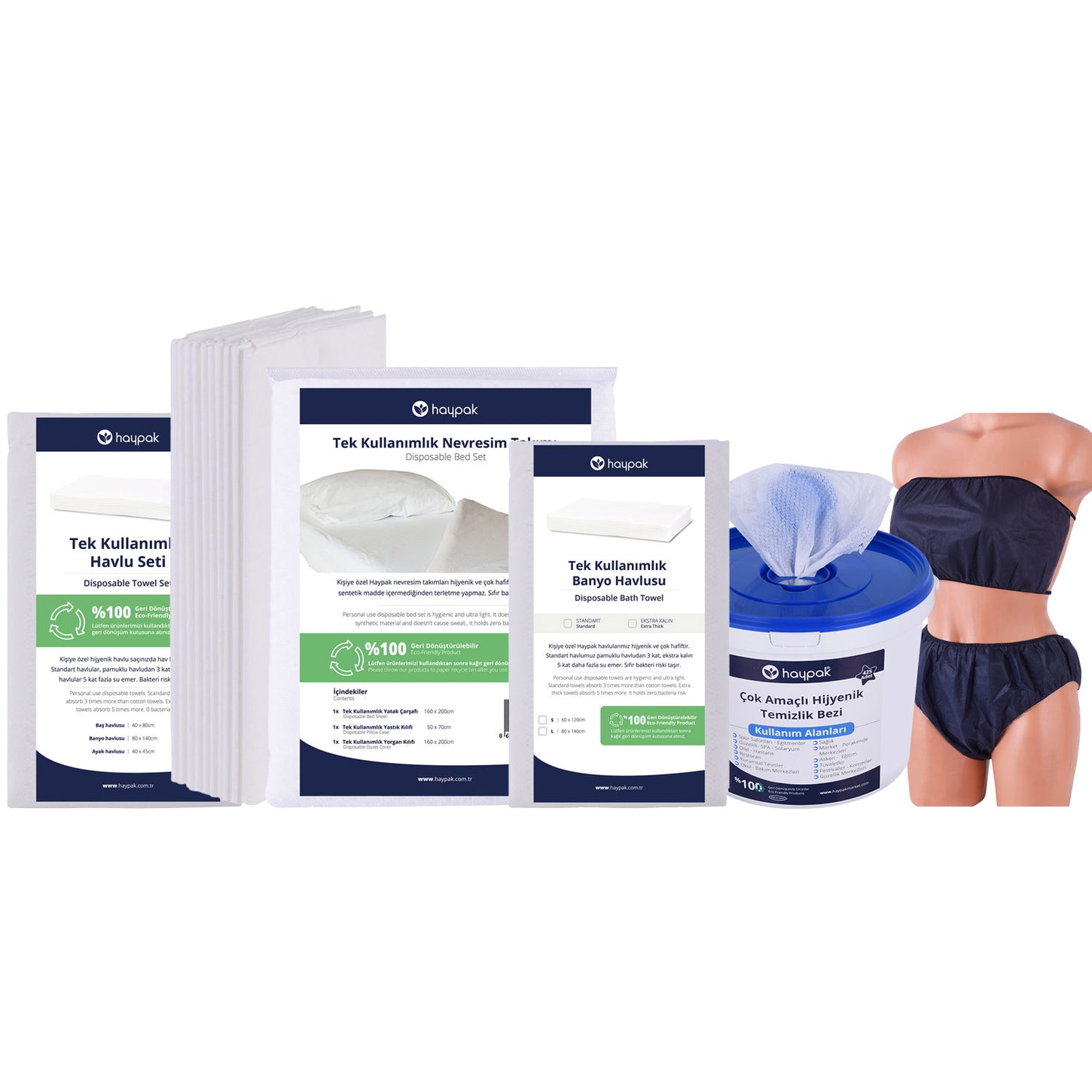 haypak.com, pioneer disposable towel manufacturer and wholesaler, is among the most successful online shopping sites in Turkey. We provide hundreds of disposable towels, disposable underwear, disposable beddings and gym wipes products to our customers. These products can be used in different areas such as fitness centers, spas, hotels, hospitals etc. Among our collections, you can find various types of disposable towel, disposable underwear, disposable beddings and gym wipes.